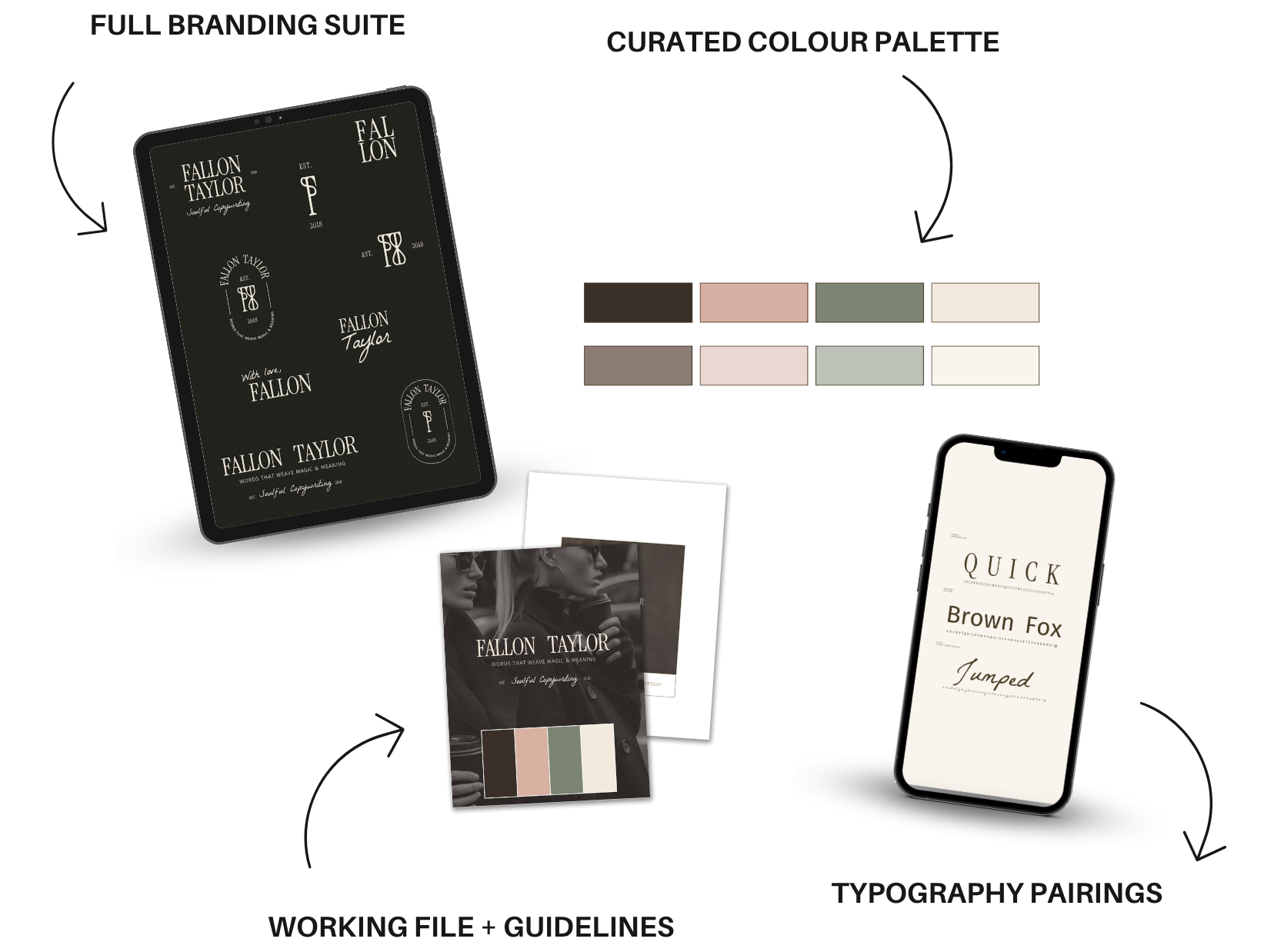 Each kit includes a primary logo, three secondary variations, brand marks and icons – everything you need to create a consistent, recognisable brand. Whether it’s for your website, Instagram, packaging or email signature, your visuals will feel aligned from the get-go.